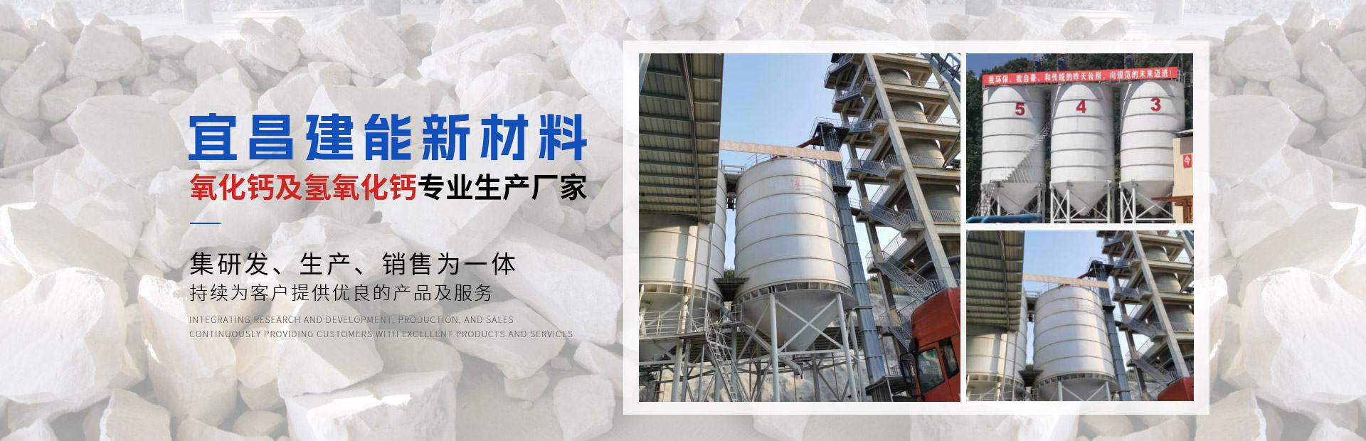 宜昌建能新材料有限公司 地址位于湖北省宜都市姚家店鎮油榨坪村二組,交通便利。我們公司是一家專業從事石灰研發、生產、銷售為一體的高科技生產型企業。公司采用優良石頭資源,出產的石灰品質優良,主要經營產品有石灰石、石灰塊、石灰石粉、氧化鈣、氫氧化鈣、母料專用灰鈣粉、建筑用石、方解石粉、重晶石粉等。 公司生產的石灰、碎石等產品,以優良的產品質量,獲得了不少客戶的信任。 公司秉承“誠信、優質、共贏”的經營理念,堅持用戶至上、服務優先原則,用心解除客戶所憂;以科技服務和好的產品服務客戶;始終堅持以“想顧客之所想,急顧客之所急”的經營理念,不斷前行......